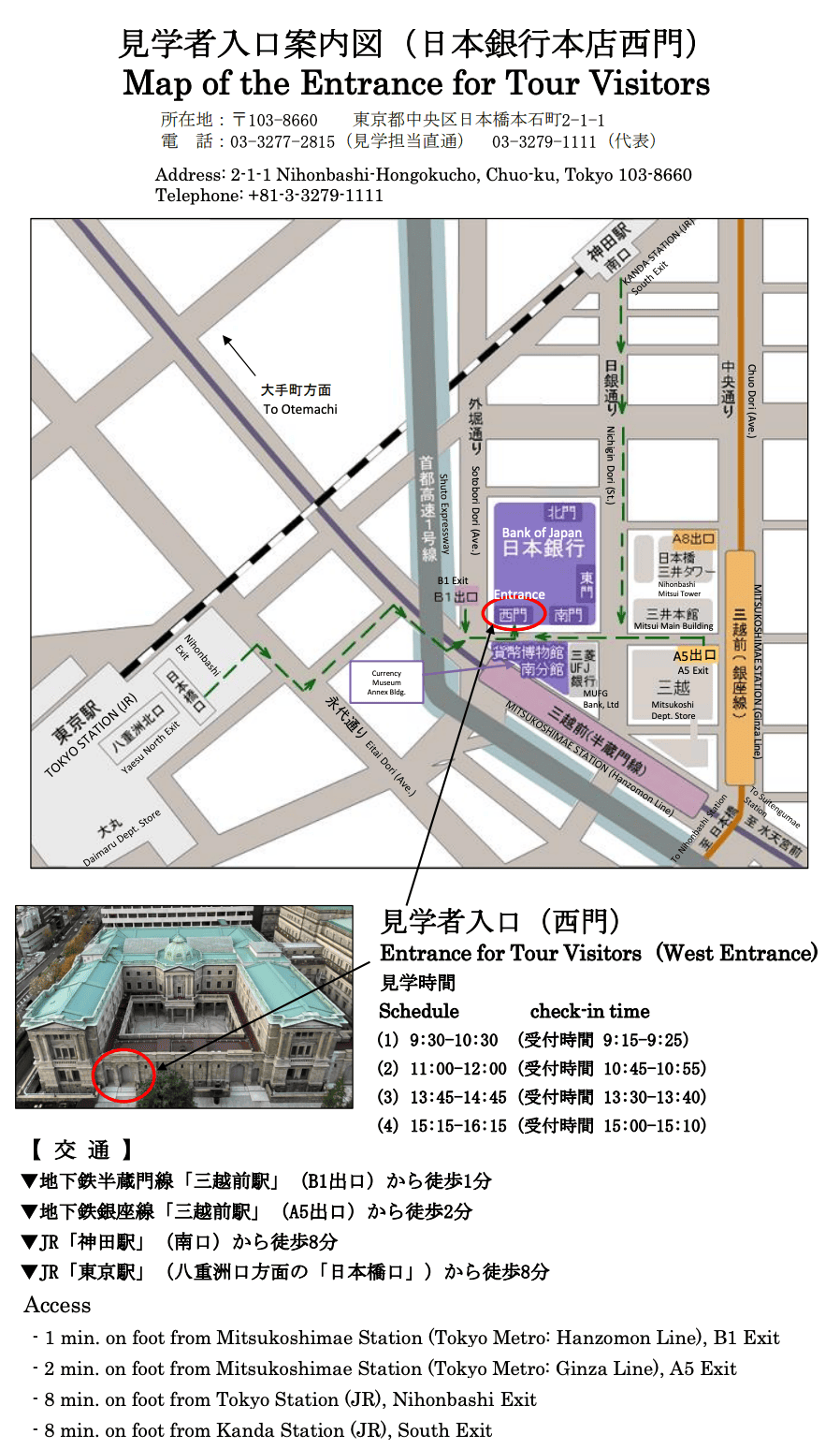 日本銀行本店は敷地が広大で、集合場所を間違えると遅刻確定(=入館拒否)になりかねません。出発前に必ずチェックしておきましょう!