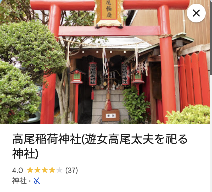 Google Mapで見ると、ひっそりと佇む神社の説明に「遊女高尾太夫を祀る」という一文添えられています。